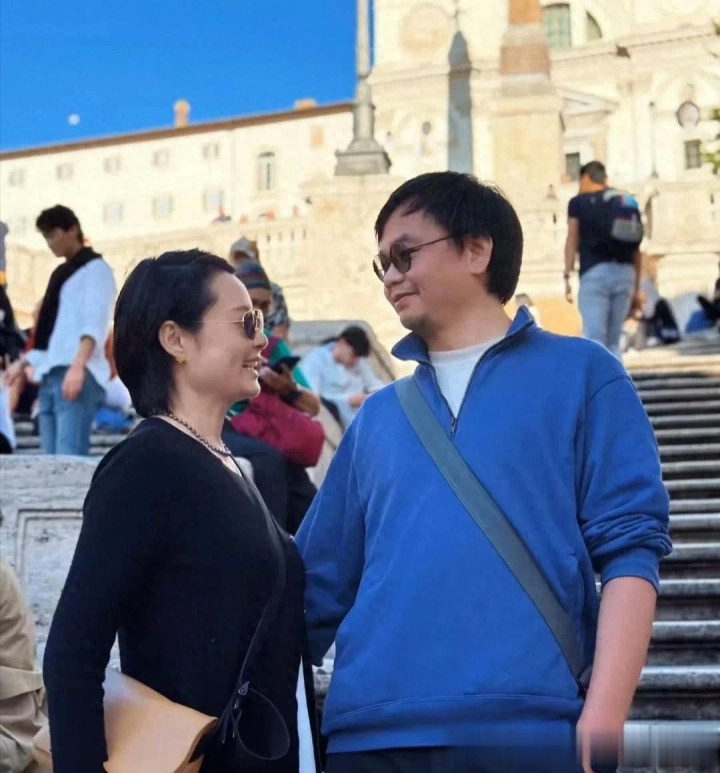 53岁袁立和老公到罗马旅游, 相差12岁, 但外表看不出年龄差